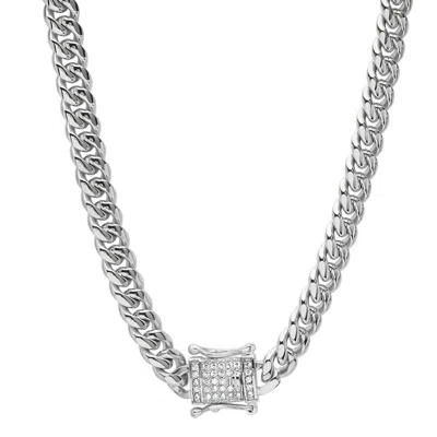 Men's Silver Men's Stainless Steel 10mm Miami Cuban Link Cz Iced Out Chain With Box Clasp 24 In Metallic