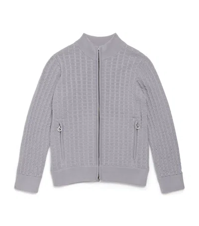 Kids' Stretch-cotton Zip-up Sweater In Gray
