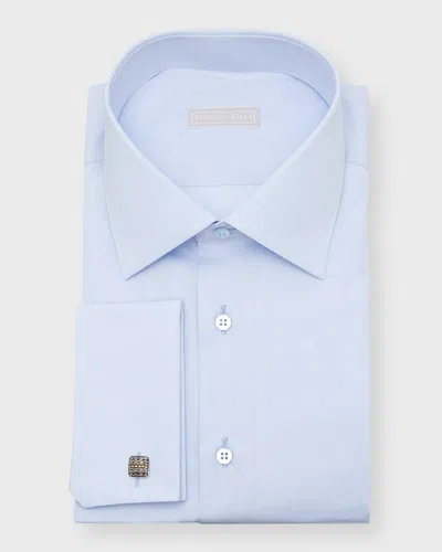 Men's Solid Barrel-cuff Dress Shirt In Blue