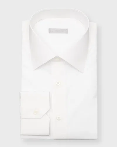 Men's Cotton Multi-stripe Point Collar Dress Shirt In White