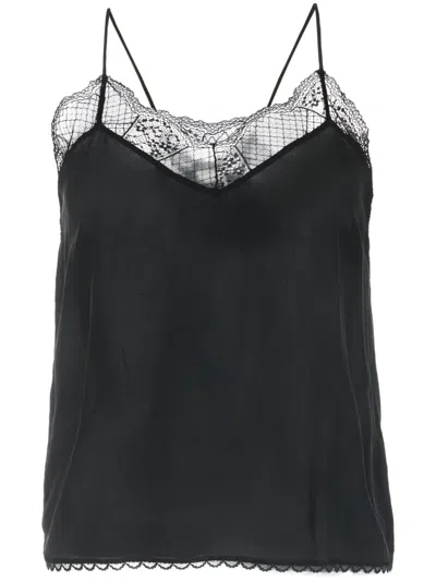 Floral-lace Silk Top In Schwarz