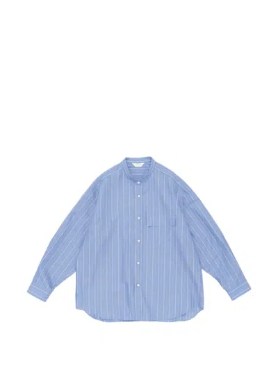 Striped Band-collar Shirt In Blue