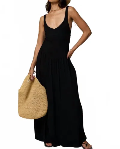 Rib Double Scoop Maxi Dress In Black