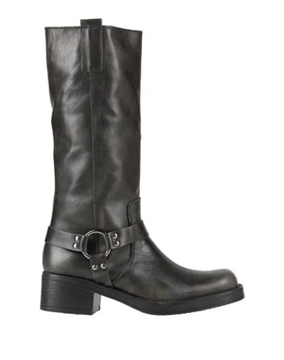 Woman Boot Charcoal Size 9 Leather In Gray