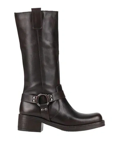 Woman Boot Dark Brown Size 8 Leather In Black