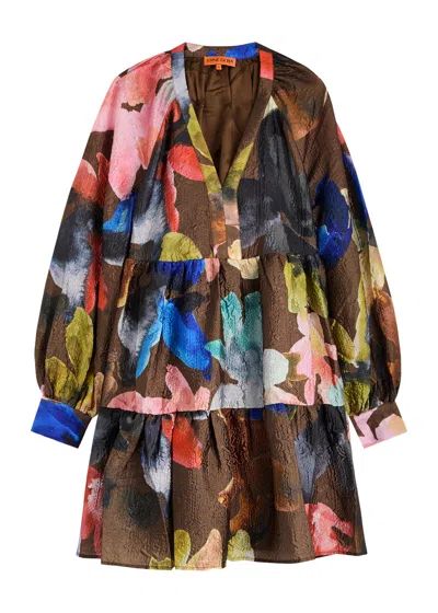Elastic Tank Crewneck Dress In Wild Flowers In Brown