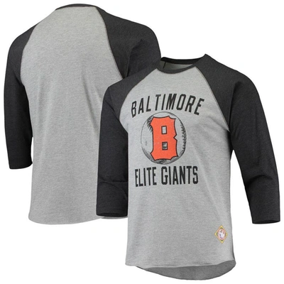 Men's Heather Gray, Black Baltimore Elite Giants Negro League Wordmark Raglan 3/4 Sleeve T-