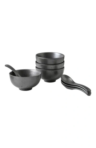 Valencia Porcelain 8-piece Bowl And Spoon Set In Gray