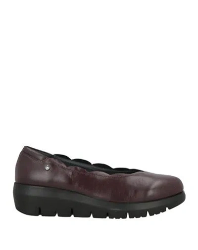 Woman Ballet Flats Plum Size 7 Leather In Burgundy