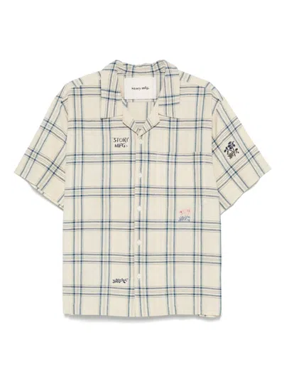 Story Mfg Check Pattern Short-sleeved Shirt With Notched Collar In White