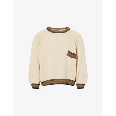 Mens Ecru Bulb Contrast-trims Knitted Jumper In Neutral