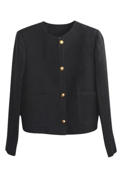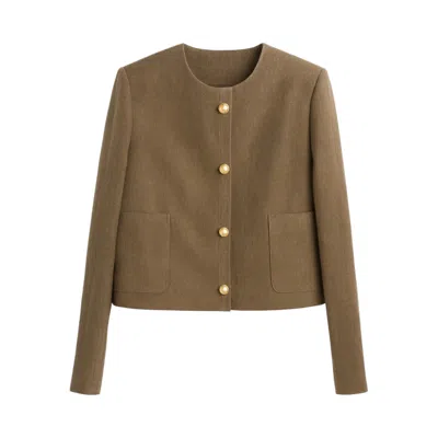 Women's Gold / Black / Brown Unisex Lapel-free Blazer In Pure Tussar Silk With Graphic Checks In Gray
