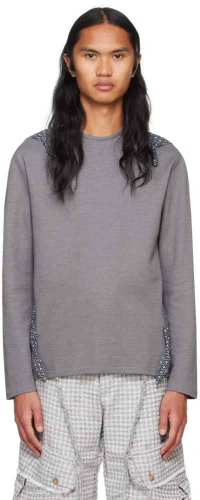 Gray & Green Stoned Angel Long Sleeve T-shirt In Grey/mint