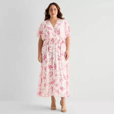 Womens Plus Short Sleeve Floral Maxi Dress In Pink