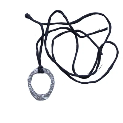 Women's Black / Silver Anillo Fine Silver Textured Pendant On Silk In Multi