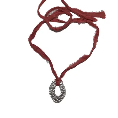 Women's Red Marea Hand Sculpted Silver Pendant On Silk Ribbon