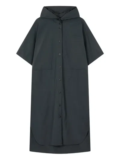 Hooded Button-up Coat In Gray