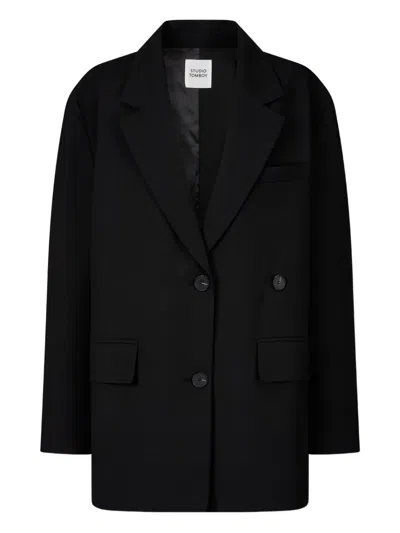 Double-breasted Coat In Black