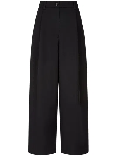 Tartan Check-pattern Belted Tuck Trousers In Black