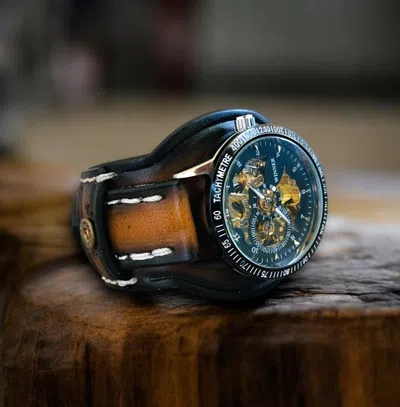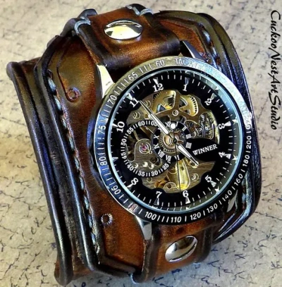 Pre-owned Steampunk Leather Cuff Watch In Aged Brown