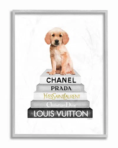 Resting Puppy On Glam Fashion Icon Book Wall Art In White