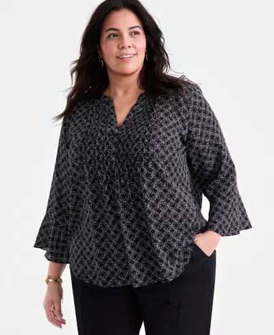 Style& Co Women's Printed Square-neck Flutter-sleeve Top, Exclusively At Macy's In Black