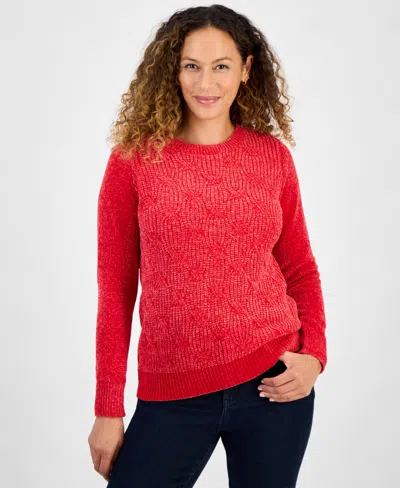Women's Chenille Crewneck Cable-knit Sweater, Macy's Exclusive In Burgundy