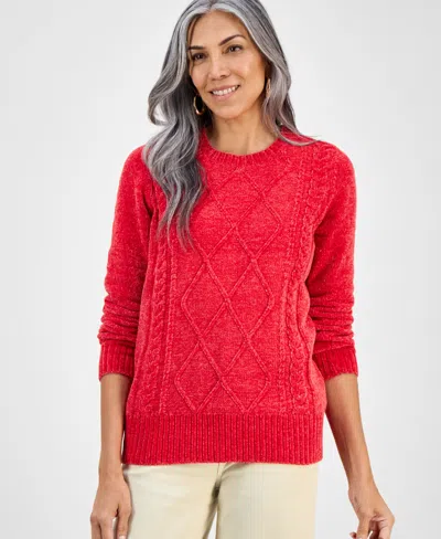 Petite Chenille Cable Knit Sweater, Macy's Exclusive In Red