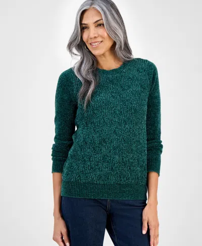 Women's Chenille Crewneck Cable-knit Sweater, Macy's Exclusive In Green