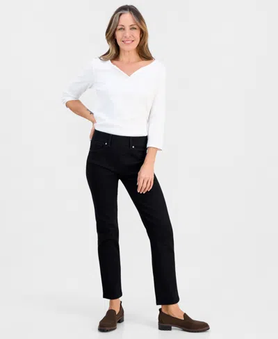 Petite High-rise Pull-on Straight-leg Jeans, Macy's Exclusive In White