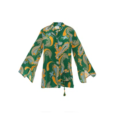 Women's Cafe Green Ikat Piped Baggy Cargo Pants