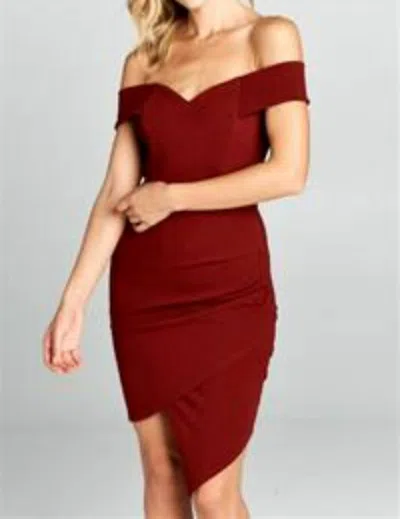 Asymettrical Off The Shoulder Mini Dress In Wine In Red