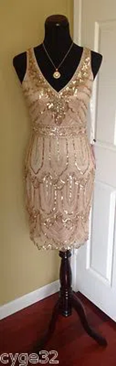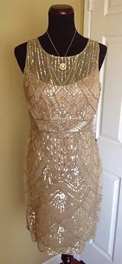 Pre-owned Beige Gold Sequins Beaded Cocktail Cocktail Evening Dress 12