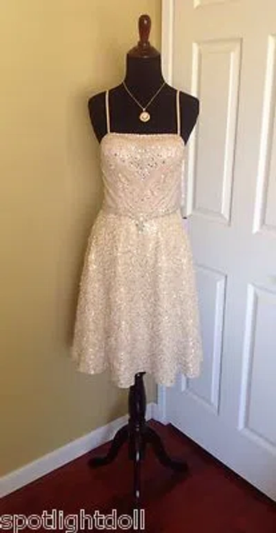 Pre-owned Brand Champagne Beaded Short Formal Party Cocktail Evening Dress 12 In Yellow