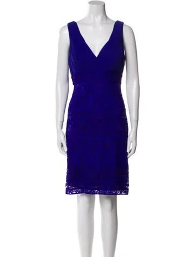 Pre-owned V-neck Knee-length Dress In Blue