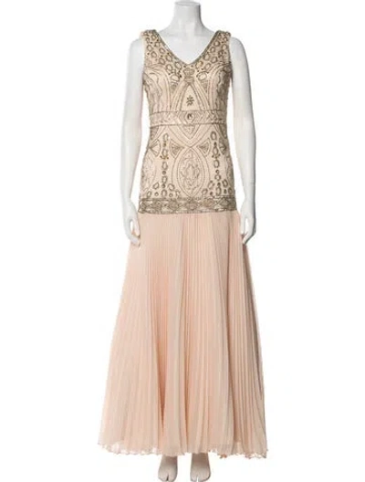 Pre-owned V-neck Long Dress In Neutral