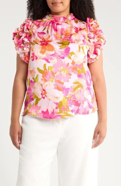 Maci Eve Floral Flutter Sleeve Top In Multi
