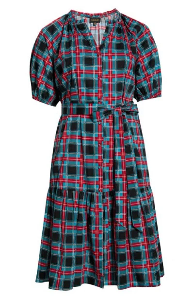 Winston Plaid Tie Waist Cotton Midi Dress In Gray