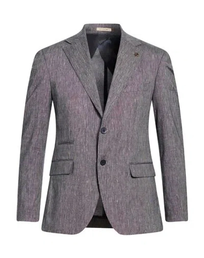 Man Blazer Blue Size 46 Polyester, Linen, Cotton, Viscose, Elastane