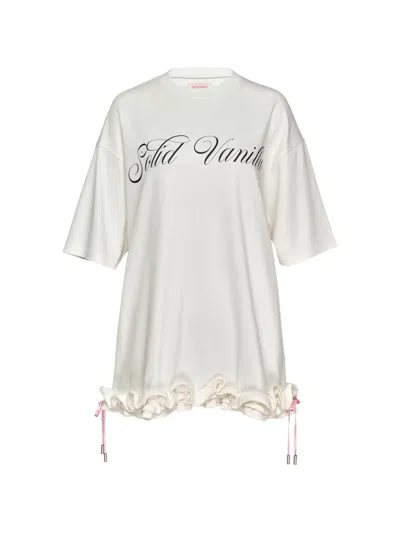 Ruffled Drawstring T-shirt In White