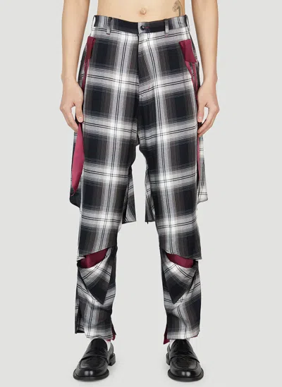Check-print Asymmetric Trousers In Black