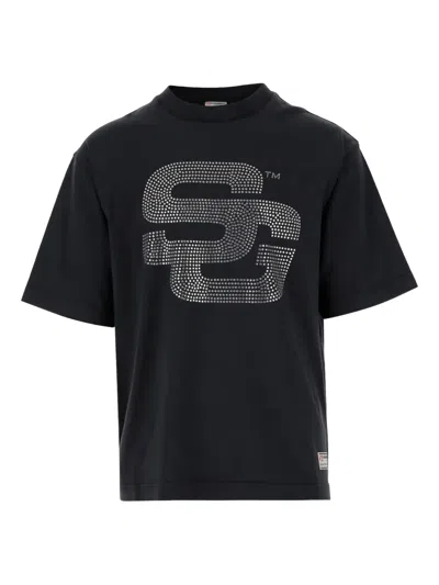 Rhinestone-embellished Cotton T-shirt With Crew Neck In Black