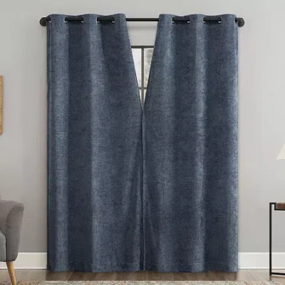 Riley Grommet Top Energy Saving Blackout Single Curtain Panel In Blue