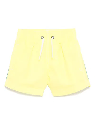 Kids' Fluo Yellow Boxer Swimsuit With Blue Logo In Giallo