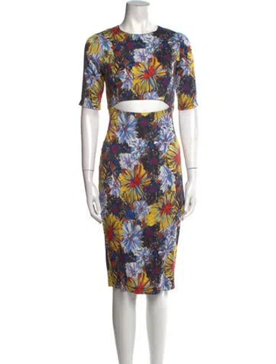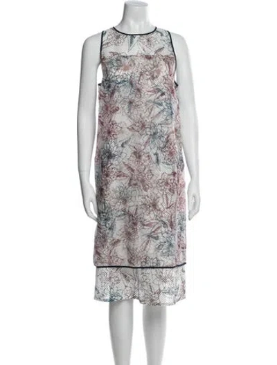 Pre-owned Floral Print Midi Length Dress In Neutral
