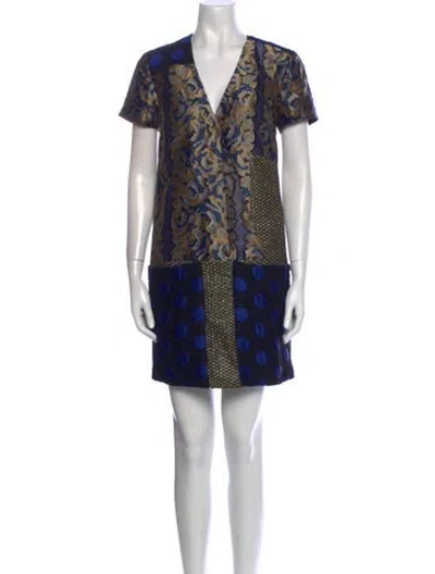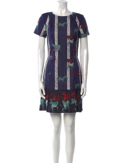 Pre-owned Colorblock Pattern Knee-length Dress In Blue