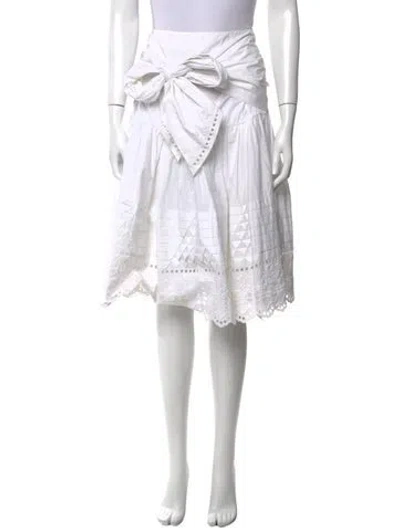 Pre-owned Scalloped Accent Knee-length Skirt In White