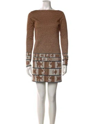 Pre-owned Bateau Neckline Mini Dress In Brown
