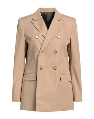 Woman Suit Jacket Sand Size 4 Cotton In Beige
