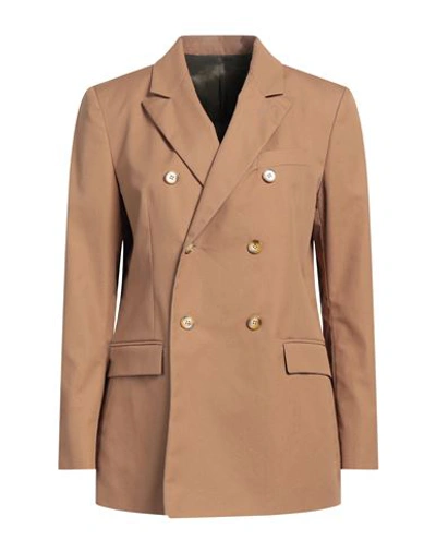 Woman Suit Jacket Camel Size 8 Cotton In Beige
